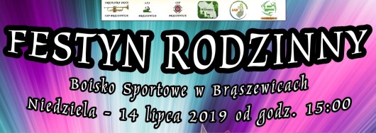 Serdecznie zapraszamy do udziału w Festynie Rodzinnym, który odbędzie się 14 lipca 2019 r. od godziny 15:00 na boisku sportowym w Brąszewicach.