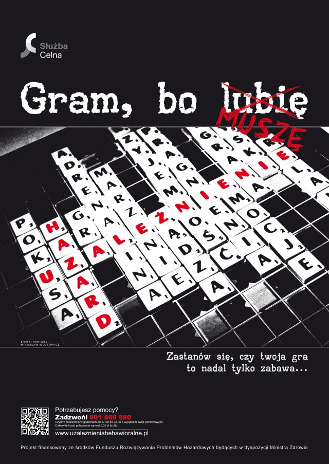 Służba Celna RP – na co dzień nadzorująca obszar gier hazardowych w Polsce – realizuje projekt pt.: Opracowanie i upowszechnianie plakatów dotyczących problemowego i patologicznego hazardu „Służba Celna ostrzega”.
