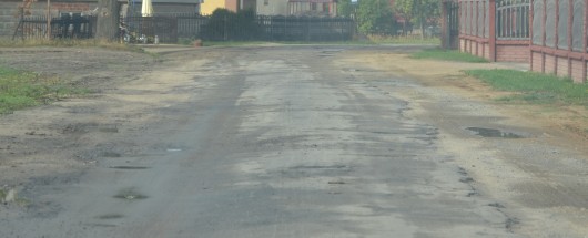 Droga w miejscowości Przedłęcze przed odbudową nawierzchni.