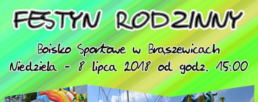 Serdecznie zapraszamy do udziału w Festynie Rodzinnym, który odbędzie się 8 lipca 2018 r. od godziny 15:00 na boisku sportowym w Brąszewicach.